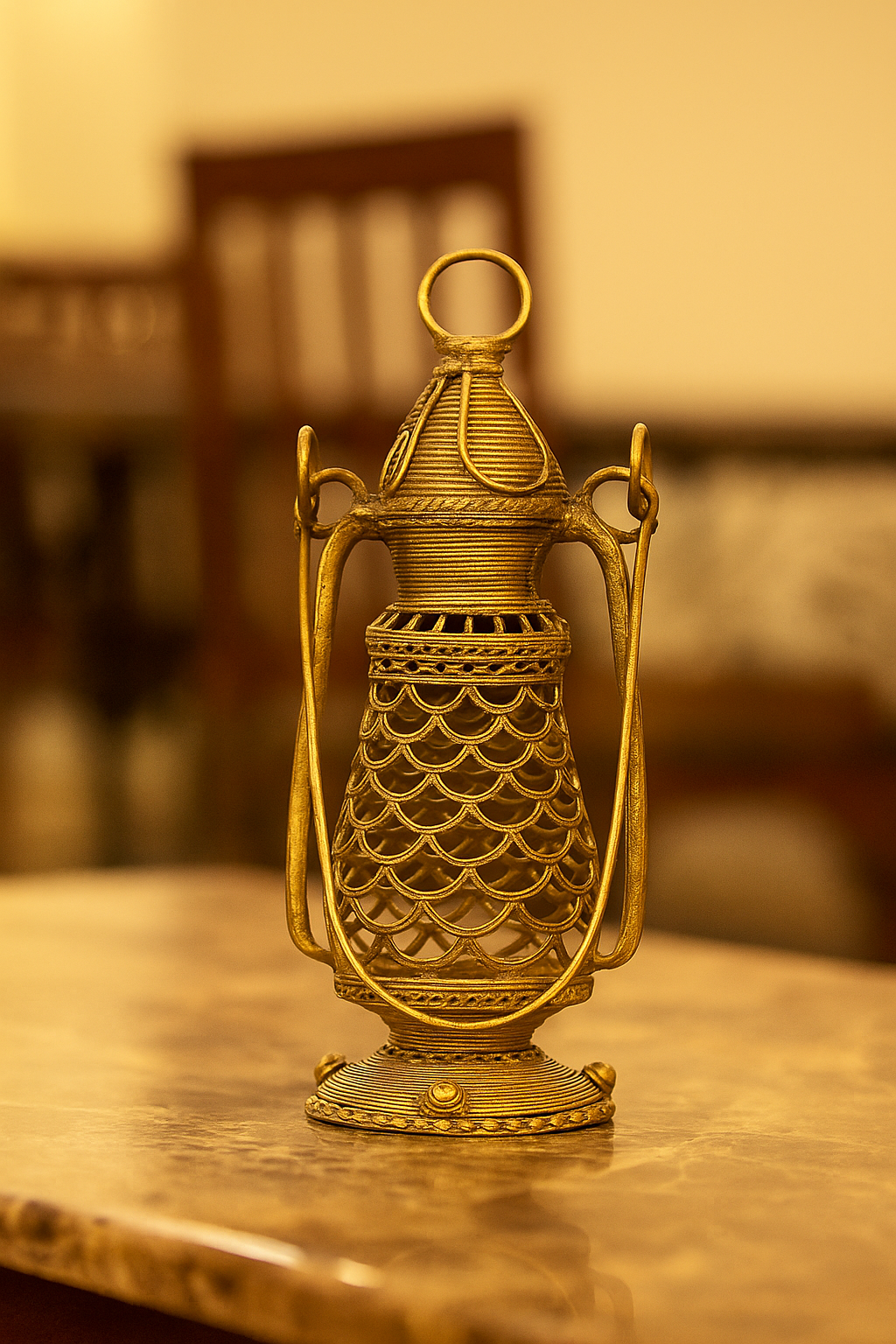Heritage Flame Brass Lantern is a handcrafted brass lantern that embodies the timeless glow of tradition. Meticulously designed with intricate detailing, this lantern captures the essence of vintage artistry while offering a warm, ambient illumination. Crafted from pure brass, it stands as both a functional light source and a decorative heritage piece, blending elegance with cultural depth. Whether placed in a puja room, living space, or festive setting, this lantern radiates grace and harmony.