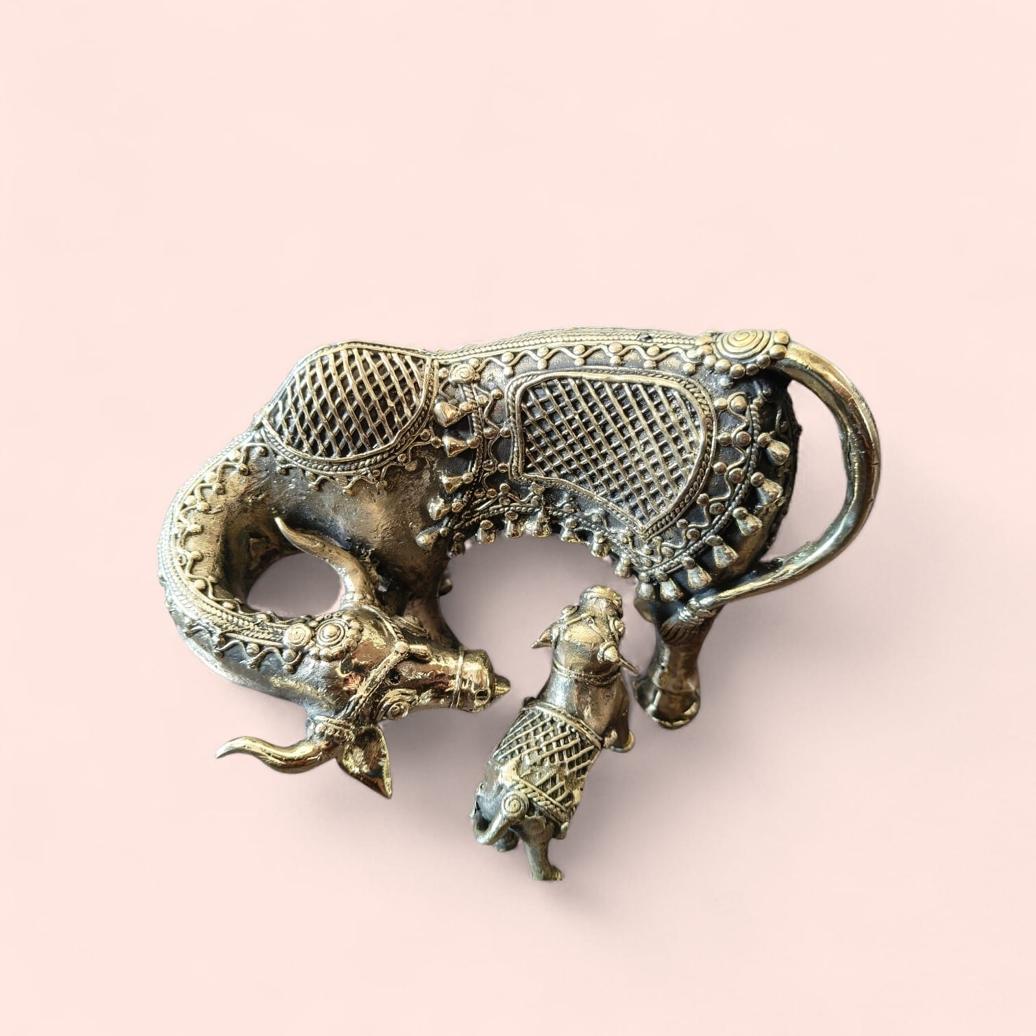• Sacred Cow & Calf Motif: Represents the divine bond of nurturing love and spiritual abundance.