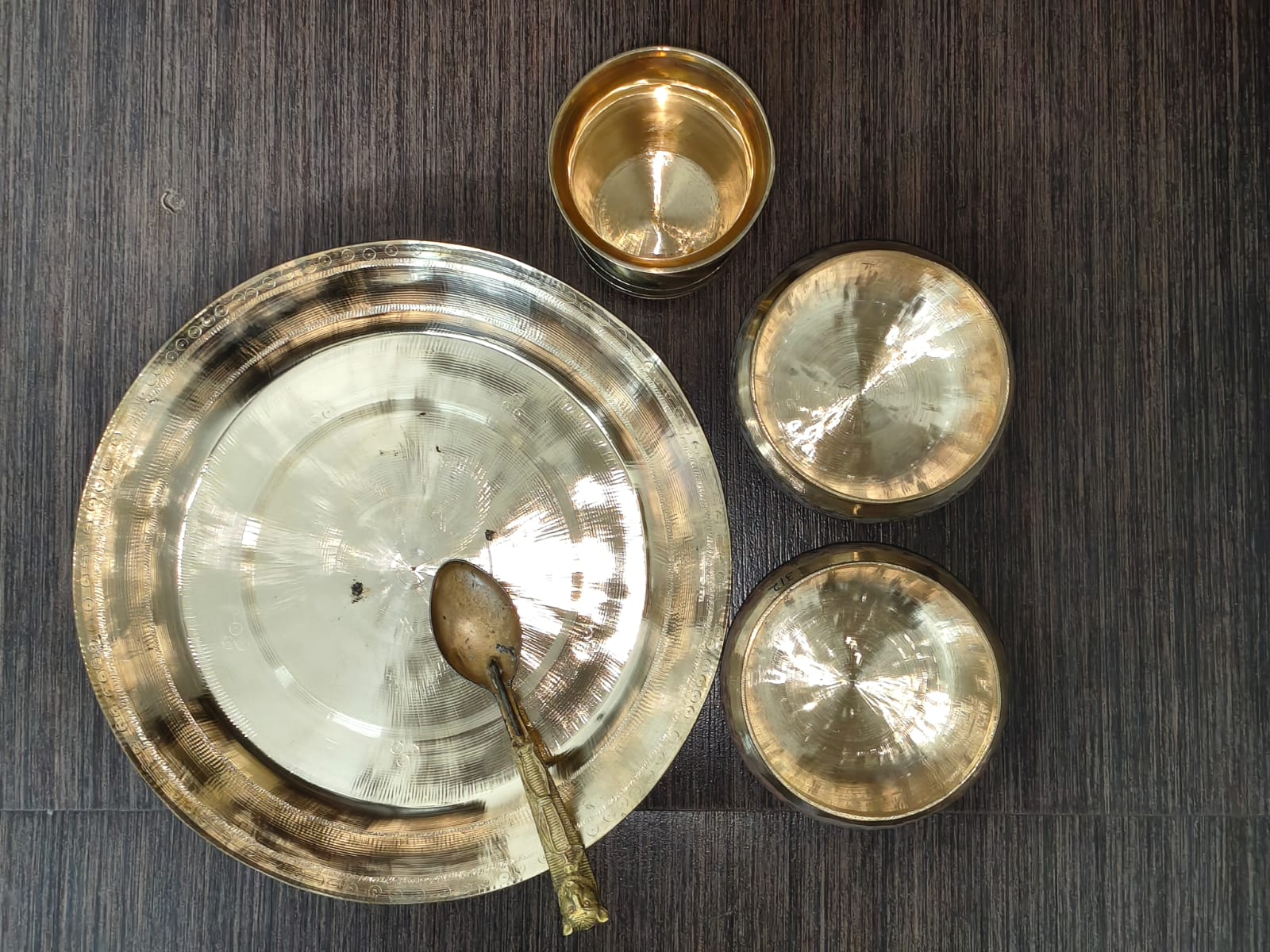 Made from pure bronze (an ancient alloy of copper and tin), Kansa dining ware has been valued in Ayurveda for its ability to enhance digestion, purify food, and balance the body’s energies. The warm golden sheen, smooth finish, and timeless design make this set ideal for festive dining, cultural celebrations, or as an auspicious gift.