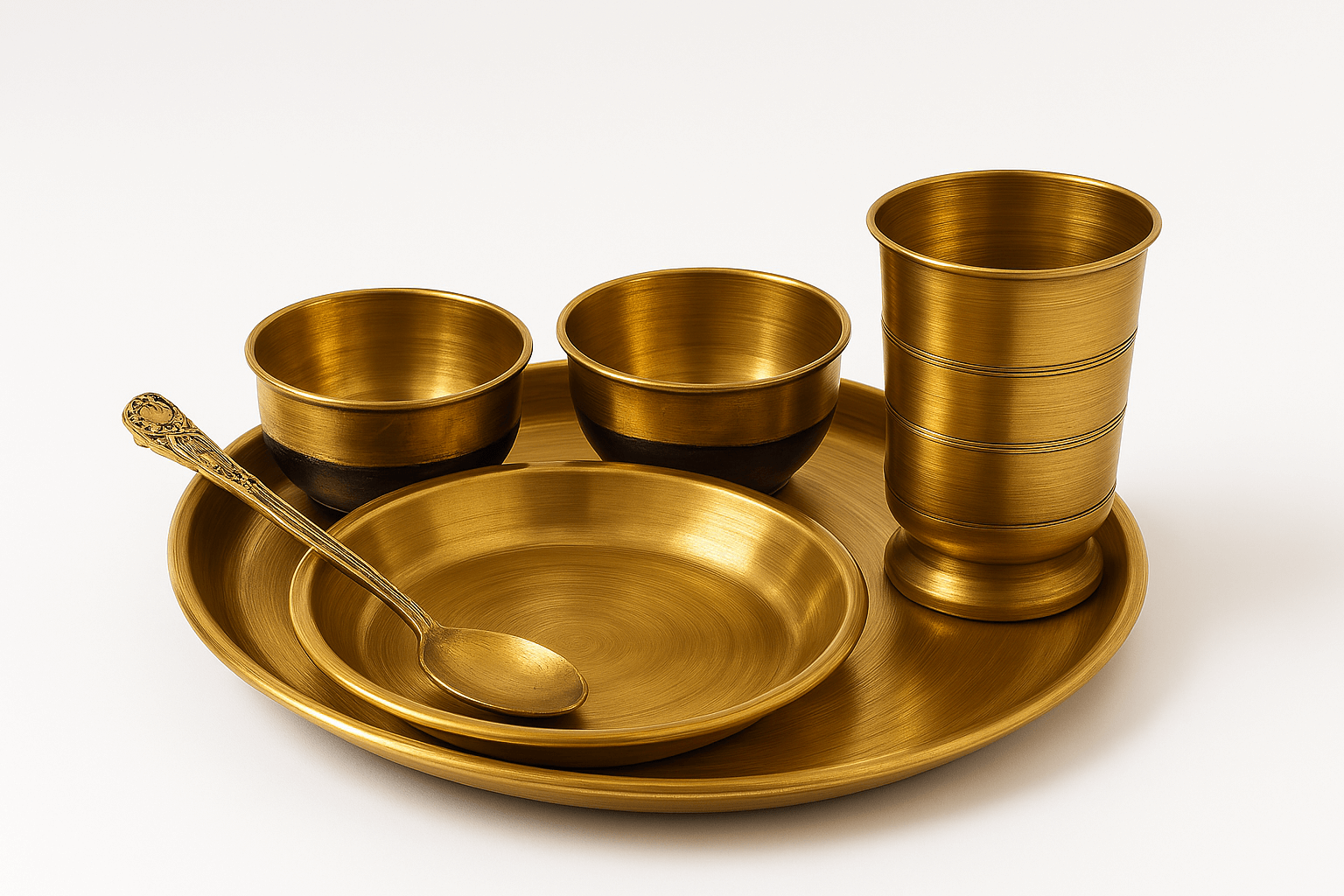 Kansa, the ancient Indian alloy of copper and tin, is more than just a dining metal – it is a symbol of culture, purity, and prosperity. For centuries, Kansa utensils have been an integral part of Indian households, used during festive feasts, temple offerings, and royal banquets. In Ayurveda, Kansa is revered for its ability to balance the body’s doshas, improve digestion, and enhance the nutritional value of food.