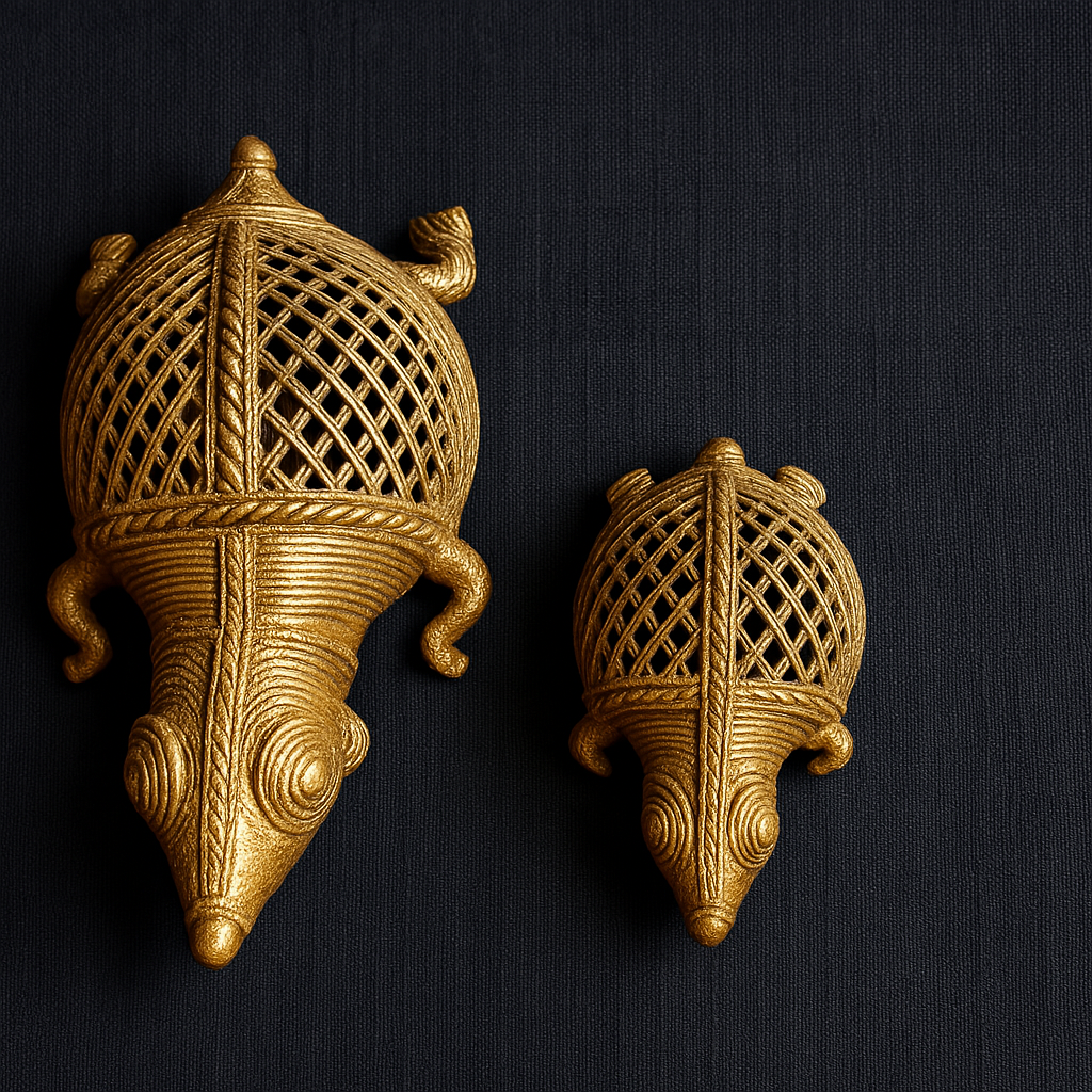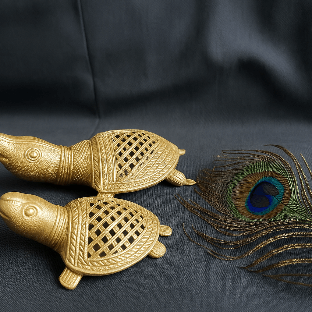 The turtle (Kurma) holds a sacred place in Indian tradition as a symbol of stability, endurance, and longevity, drawing from the Kurma avatar of Lord Vishnu. A pair of turtles further represents balance, companionship, and prosperity, making it an auspicious emblem for homes and workplaces. Turtles are also considered carriers of wealth, harmony, and protection, deeply valued in both Vastu and Feng Shui practices. The Suvarna Kurma Dvaya, with its radiant golden finish and handcrafted Dhokra artistry, is not just a décor piece but a timeless expression of abundance, resilience, and cultural heritage.