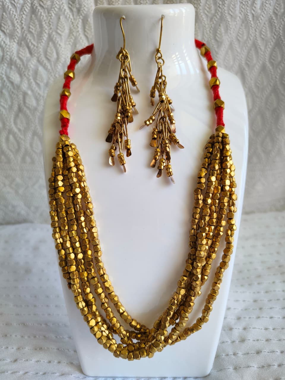 Be the first to review “Tribal Elegance – Handmade Dhokra Five-Series Necklace with Angurv Earrings (20″)”
